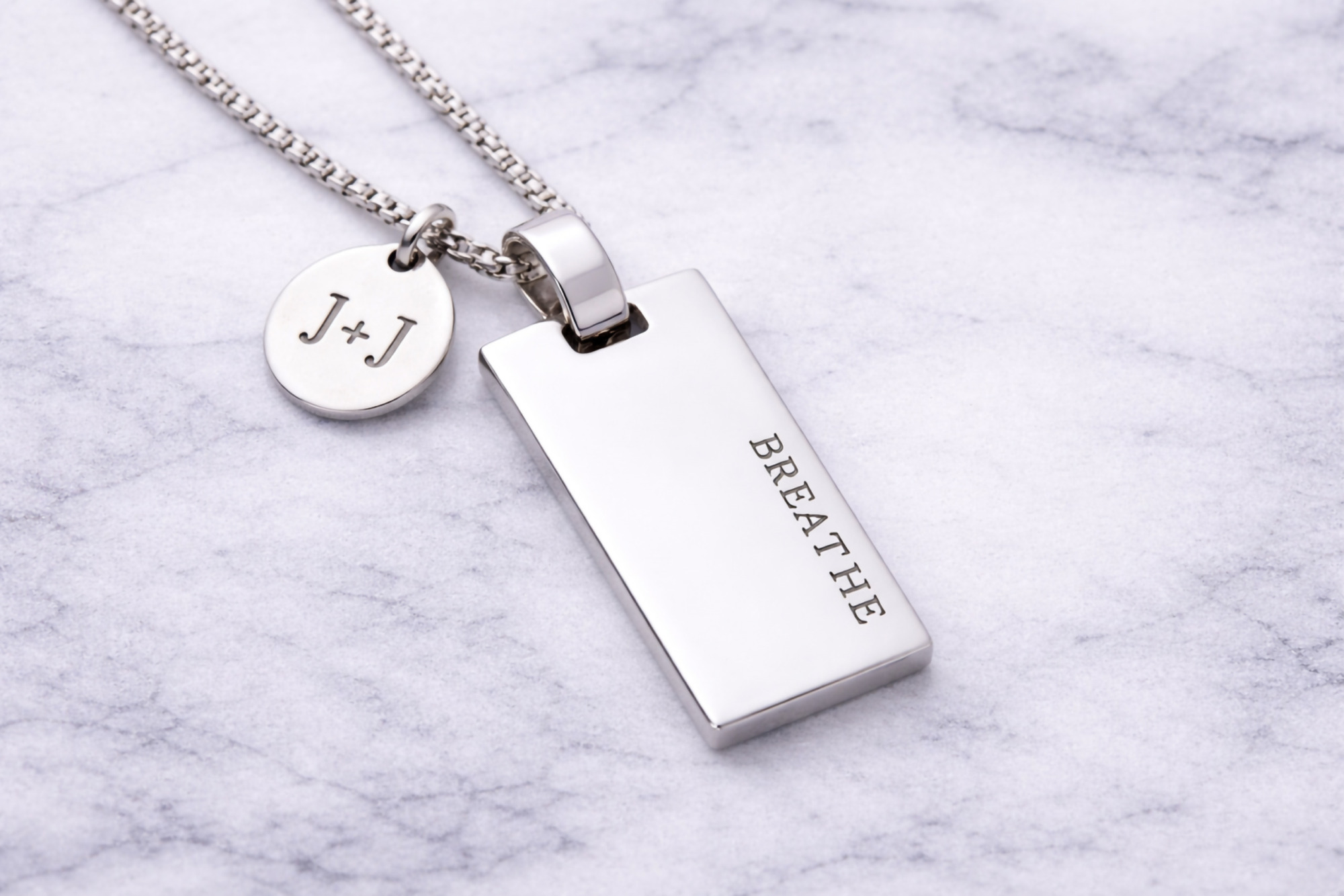 Our custom engraving and etching are available across a wide selection of pendants for both men and women, crafted from our premium stainless steel collections. Each piece can be customized with precision using professional engraving technology to ensure clean, durable, and long-lasting results.